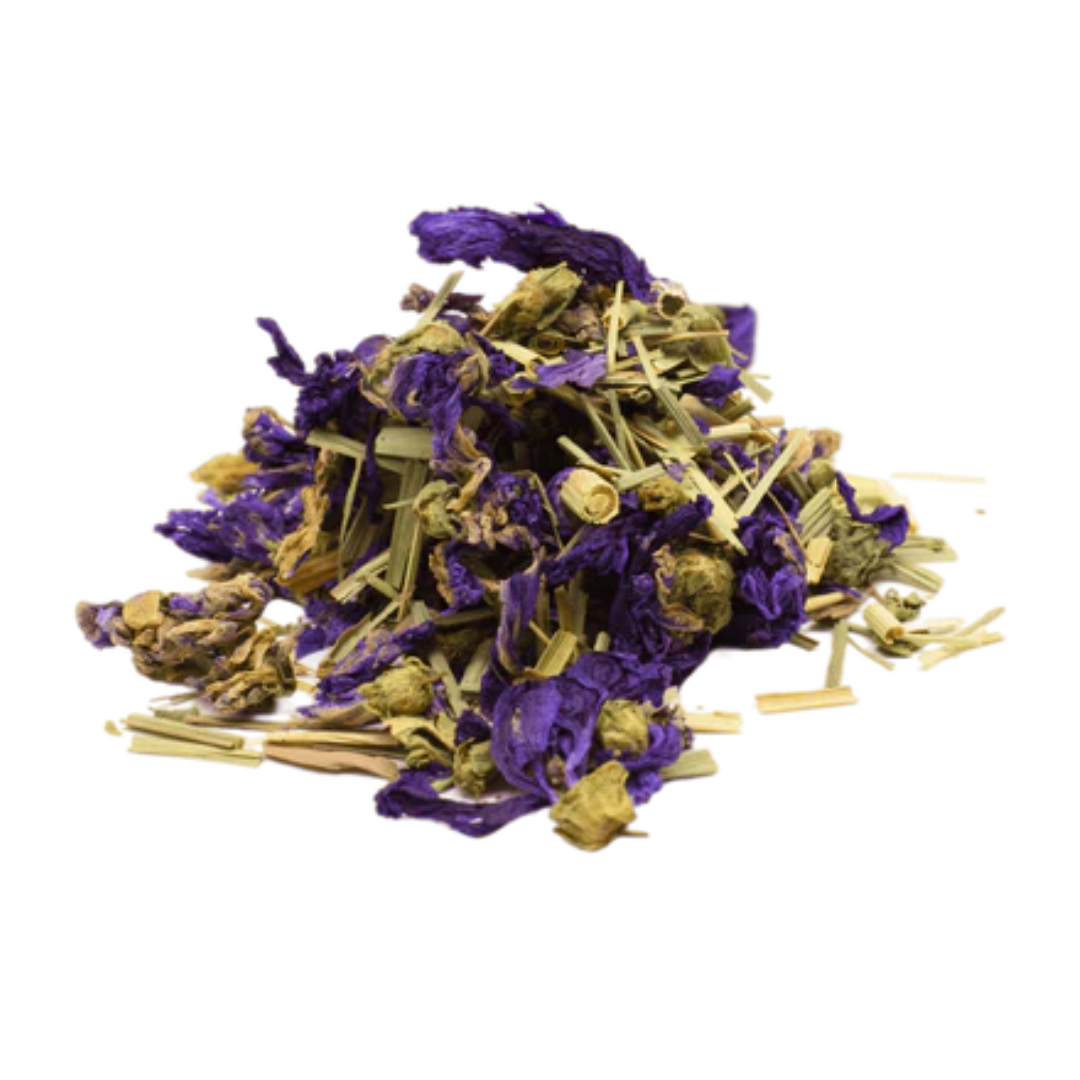 Das Besondere an diesem Tee ist seine intensive, leuchtend blaue Farbe, die die Tasse in ein visuelles Highlight verwandelt. Ergänzt wird dieses Spektakel durch das erfrischend-zitronige Aroma des Zitronengrases, das die Mischung harmonisch abrundet.